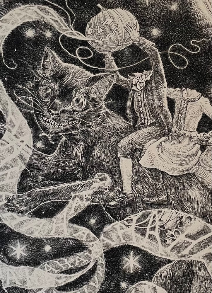 This was a really fun piece to work on. It was used as a variant cover for the Halloween special of the comic book Hello Darkness published by BOOM! Studios. I wanted a classic Halloween greeting card feel for it with a little Sleepy Hallow mixed in. The original art is much smaller. For this print I wanted to blow it up nice and big. This is just the black and white version. The one that was published was in color.